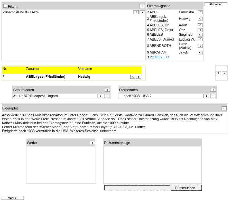 kann durch die Trefferliste gezielt navigiert werden. Diese Liste