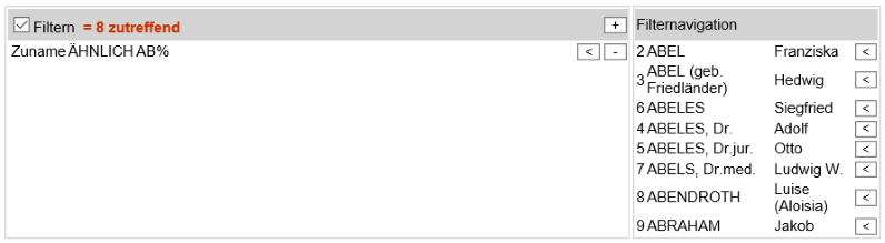 Durch Anklicken von „[<]“ rechts in der Filterzeile